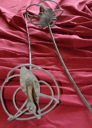 Auf dem Bild sehen sie zwei Korbschläger, wie sie für das akademische Fechten verwendet werden können. Zur umfassenden Ausbildung an der Akademie der Fechtkunst Deutschlands gehören auch die Vermmittlung der Grundkenntnisse zum Akademischen Fechten. In meinen Kursen und Vorträgen beschreibe ich diese Art der Fechtkunst, übe sie allerdings selbst nicht aus.